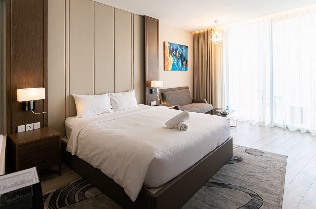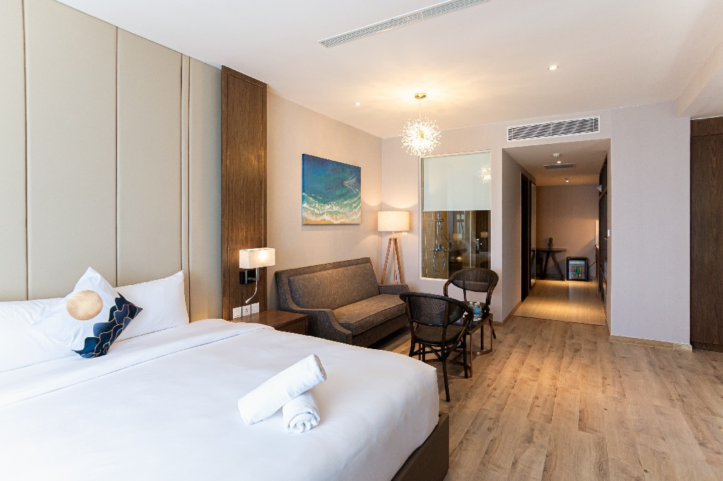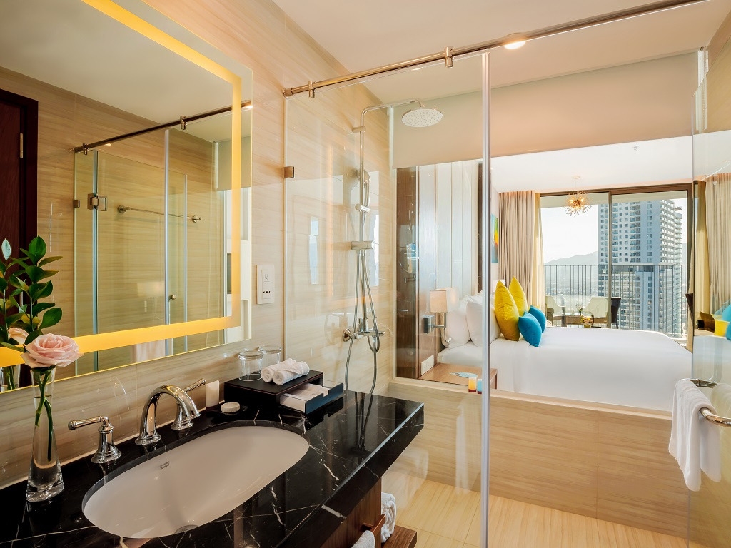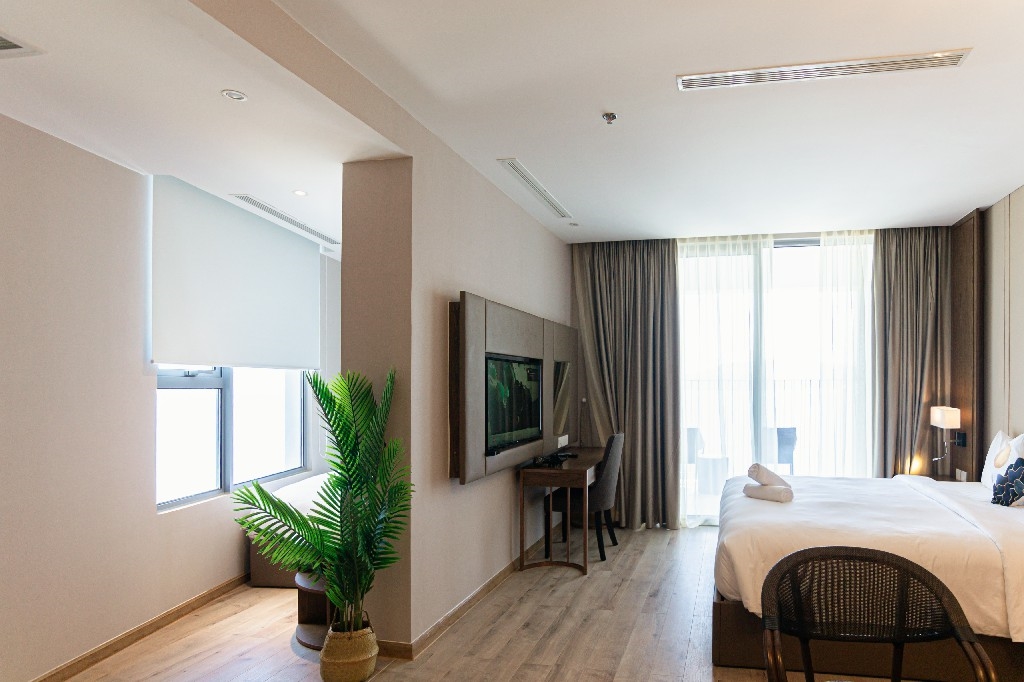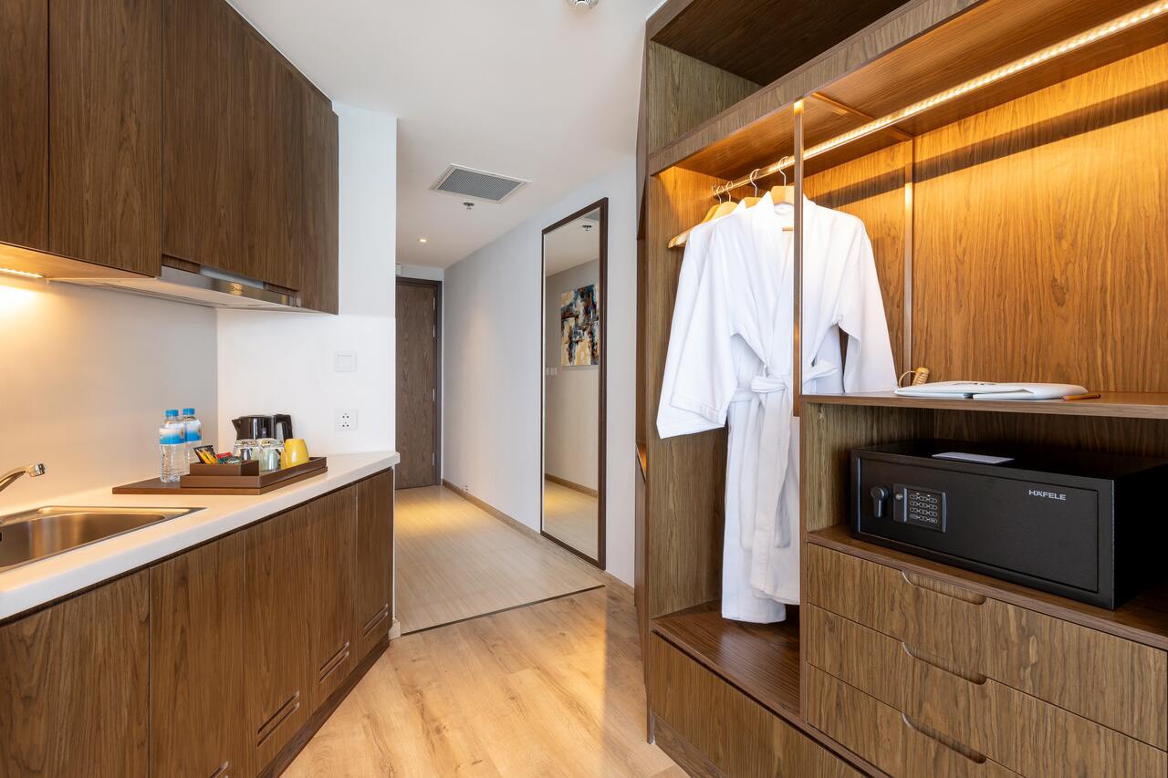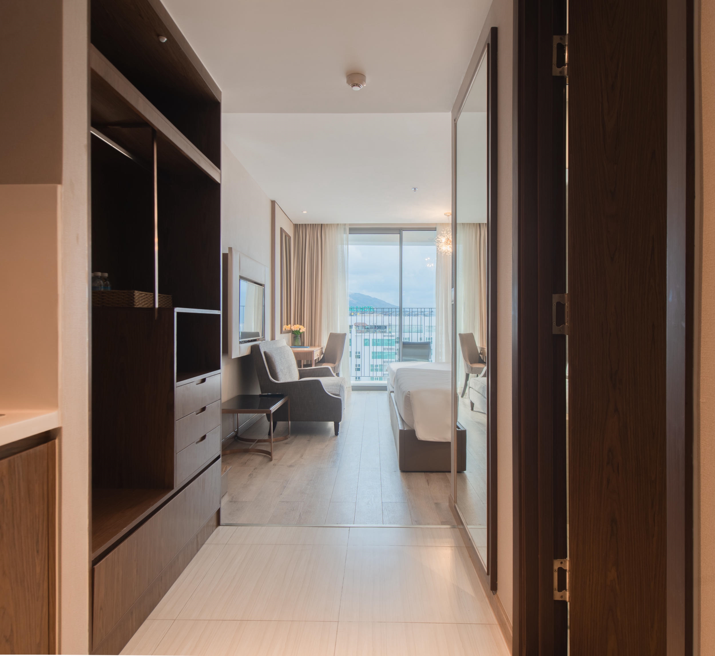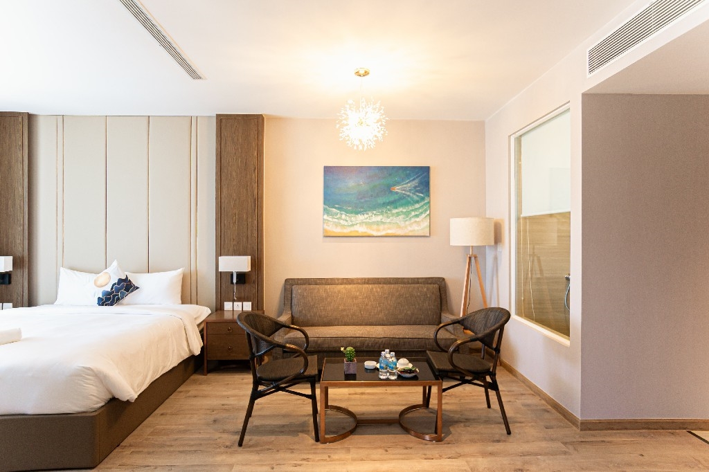 Trải nghiệm sự sang trọng, thoải mái với thiết kế hiện đại đến từng chi tiết từ giường ngủ êm ái, bếp nhỏ tiện dụng, nhà tắm rộng rãi, bàn trà ban công thoải mái…giúp bạn có được những phút giây thư giãn nhất sau một ngày vui chơi mỏi mệt.