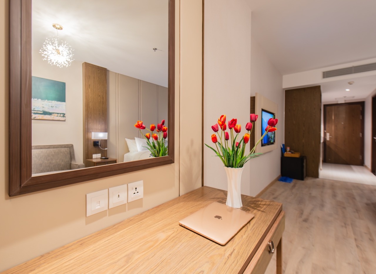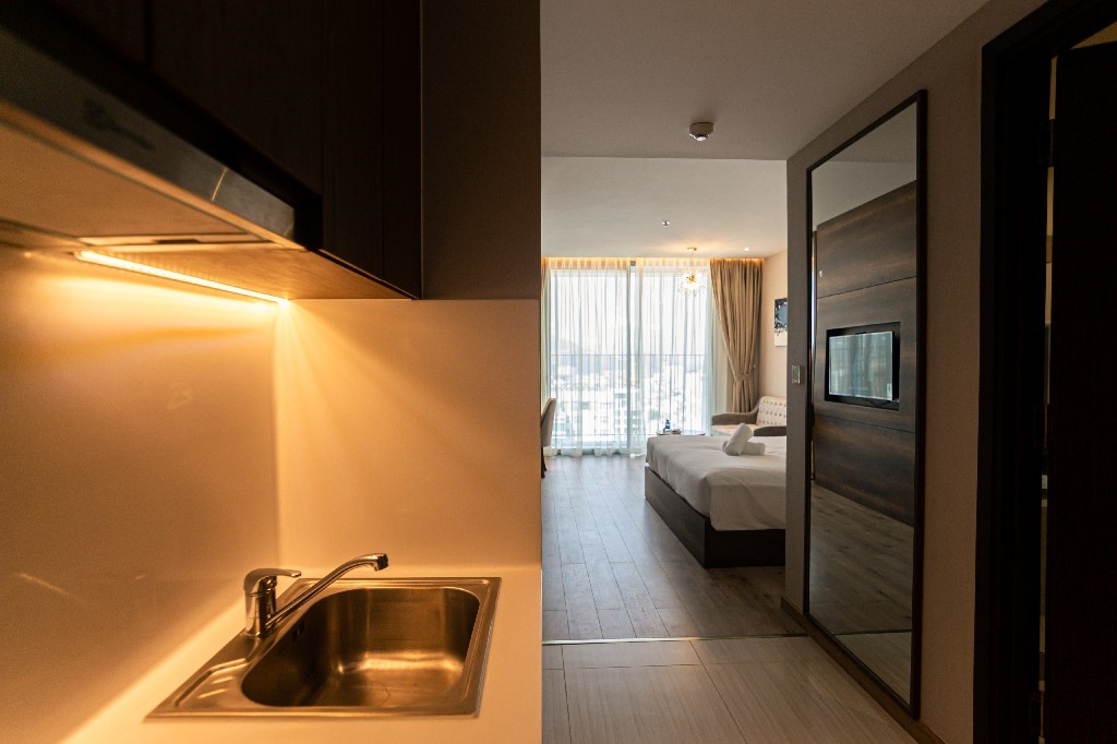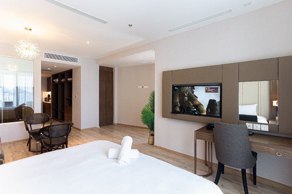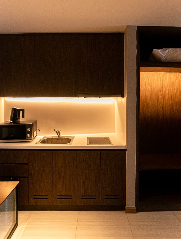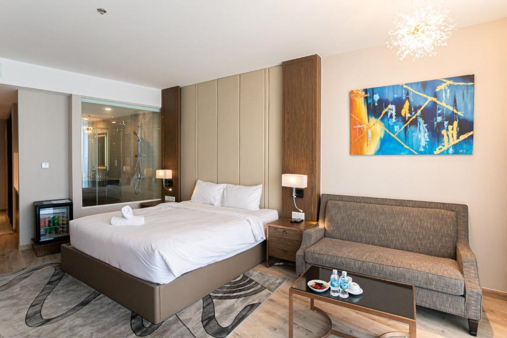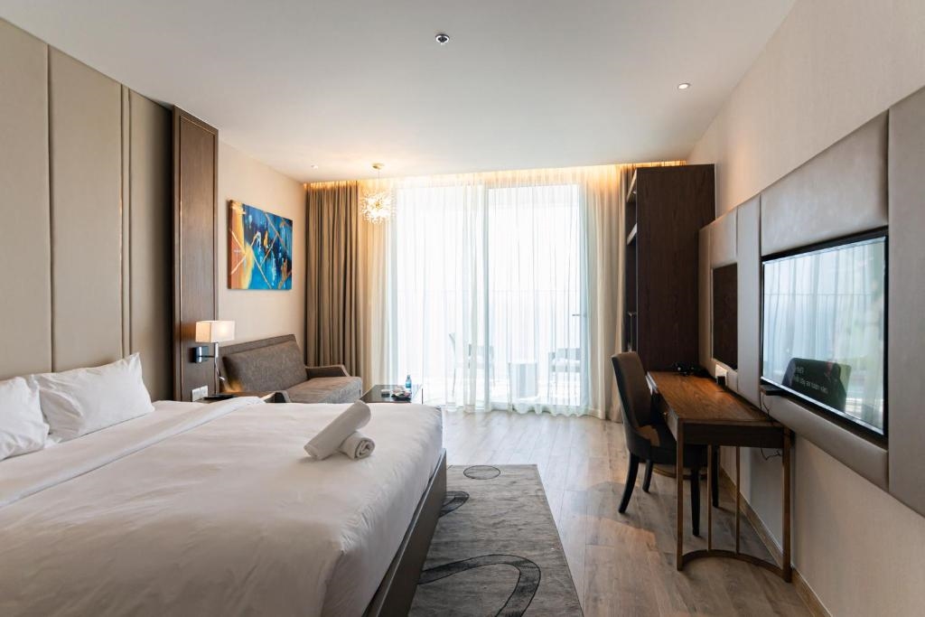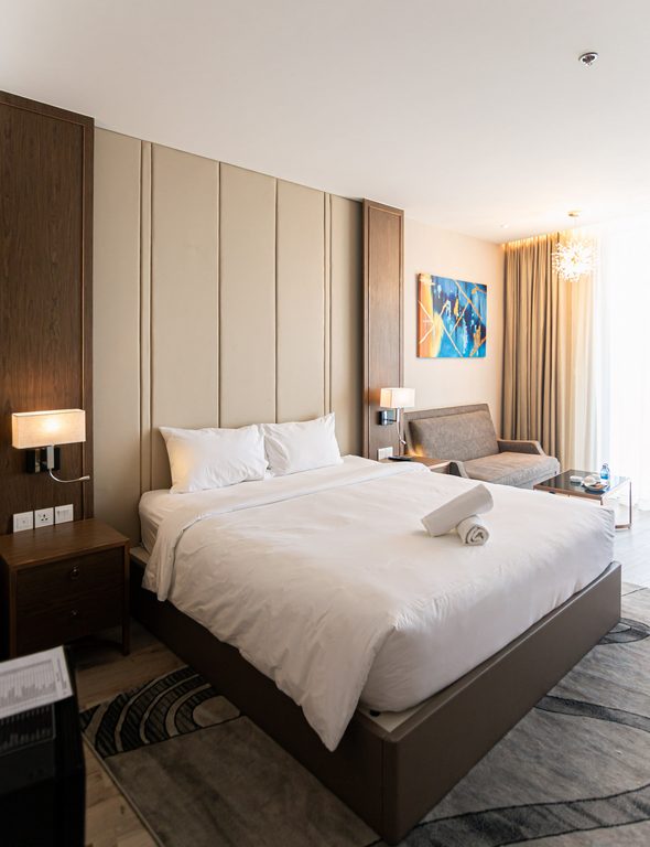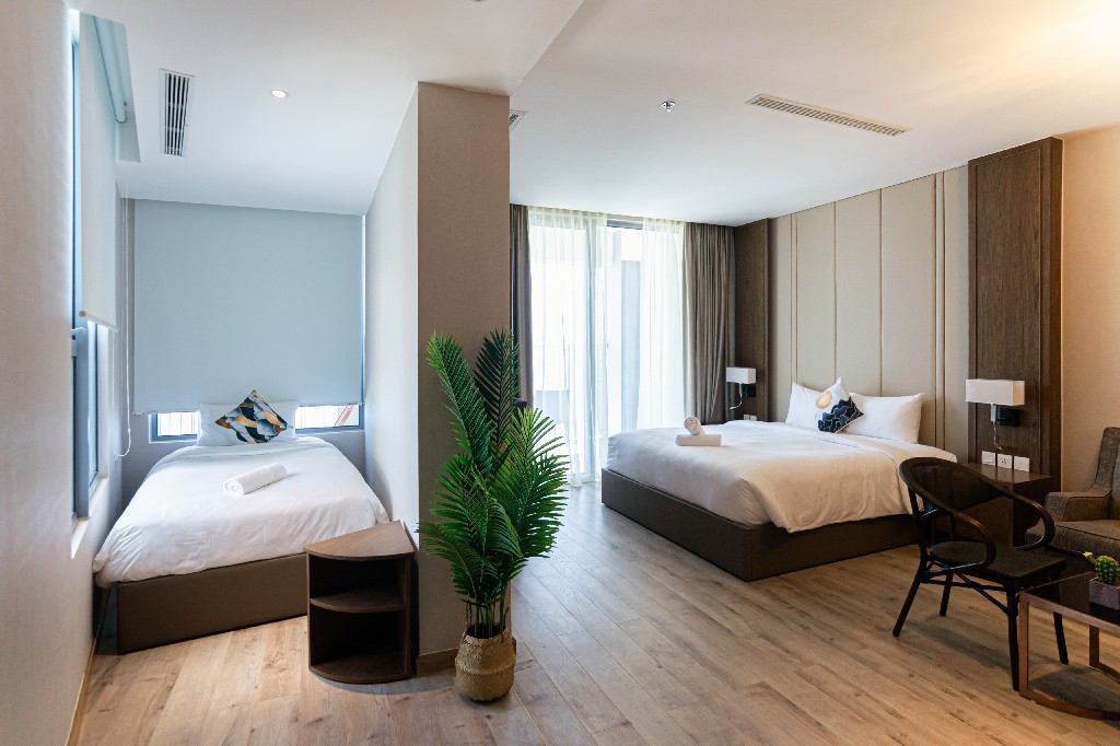 Trải nghiệm sự sang trọng, thoải mái với thiết kế hiện đại đến từng chi tiết từ giường ngủ êm ái, bếp nhỏ tiện dụng, nhà tắm rộng rãi, bàn trà ban công thoải mái…giúp bạn có được những phút giây thư giãn nhất sau một ngày vui chơi mỏi mệt.